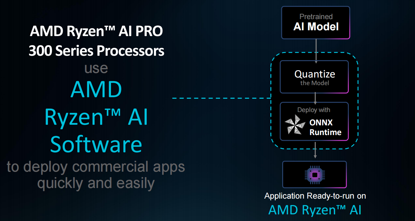 当然,在AI应用方面,锐龙AI PRO 300系列也拥有出色的生态环境。通过AMD Ryzen AI Software,开发者可以很轻松地为锐龙AI PRO 300系列处理器开发出AI应用,为配备锐龙AI PRO 300系列处理器的AI PC快速赋能,提供出色的AI应用体验。
