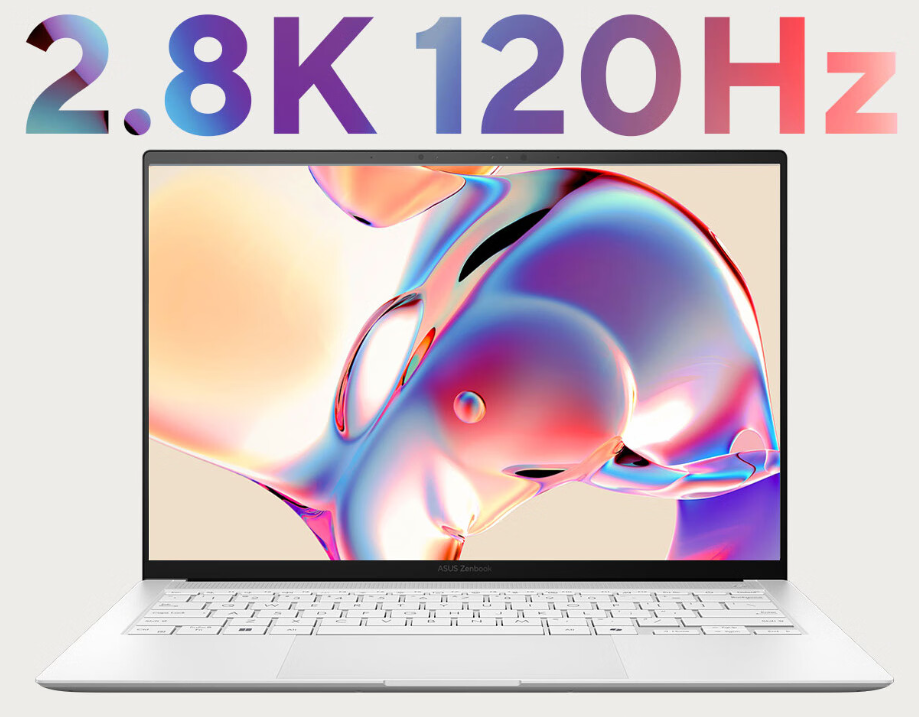 屏幕为14英寸2.8K 120Hz OLED华硕好屏,这是一块集高亮度、高刷、超高色域(且可切换色域)、极佳色准、诸多认证和功能于一身的顶级素质屏幕。100%P3 影院级广色域,600尼特峰值亮度,1000000:1对比度,出厂经过逐台调色,显示效果通透,色彩呈现精准。T0级别的0.2ms响应时间,杜绝画面拖影,配合120Hz电竞级高刷,使用体验流畅丝滑。