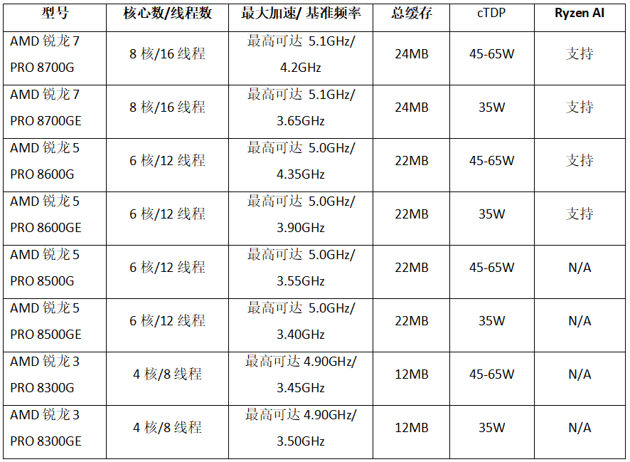 —— AMD 锐龙PRO 8040系列和AMD 锐龙PRO 8000系列为商业用户带来先进的x86处理器驱动AI PC