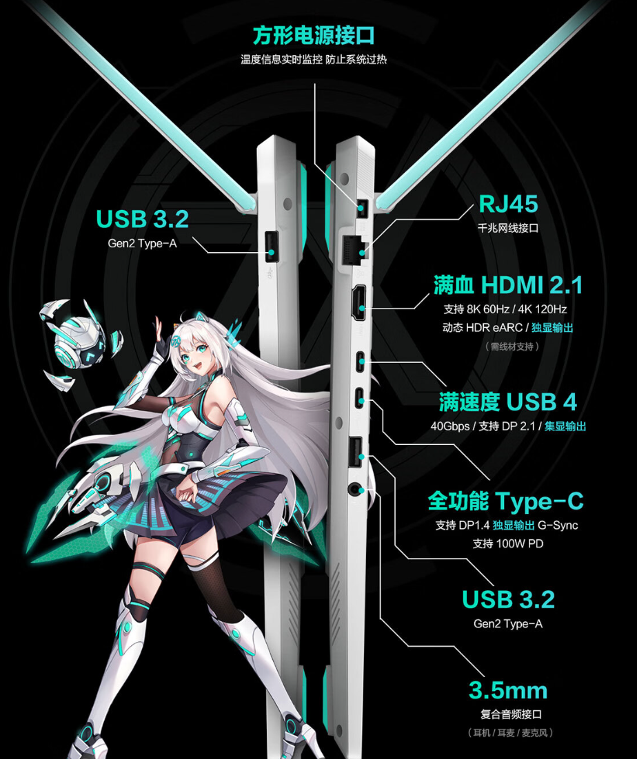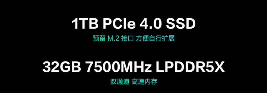 存储方面,天选 锐龙AI版标配32GB 7500MHz LPDDR5X双通道高频内存,搭载1TB PCIe 4.0 SSD,支持第二块SSD扩展。