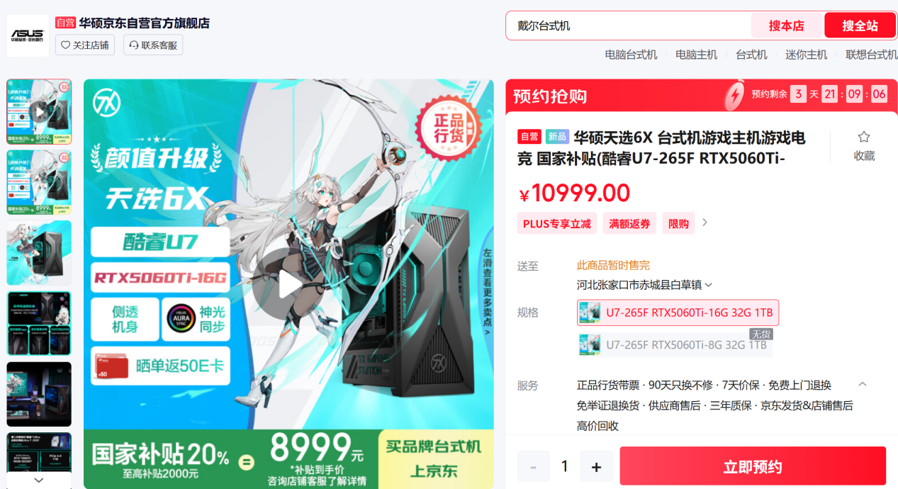 目前全新一代华硕天选6X台式机,于5月26日在华硕京东自营官方旗舰店上架开售,开售活动价:10999。