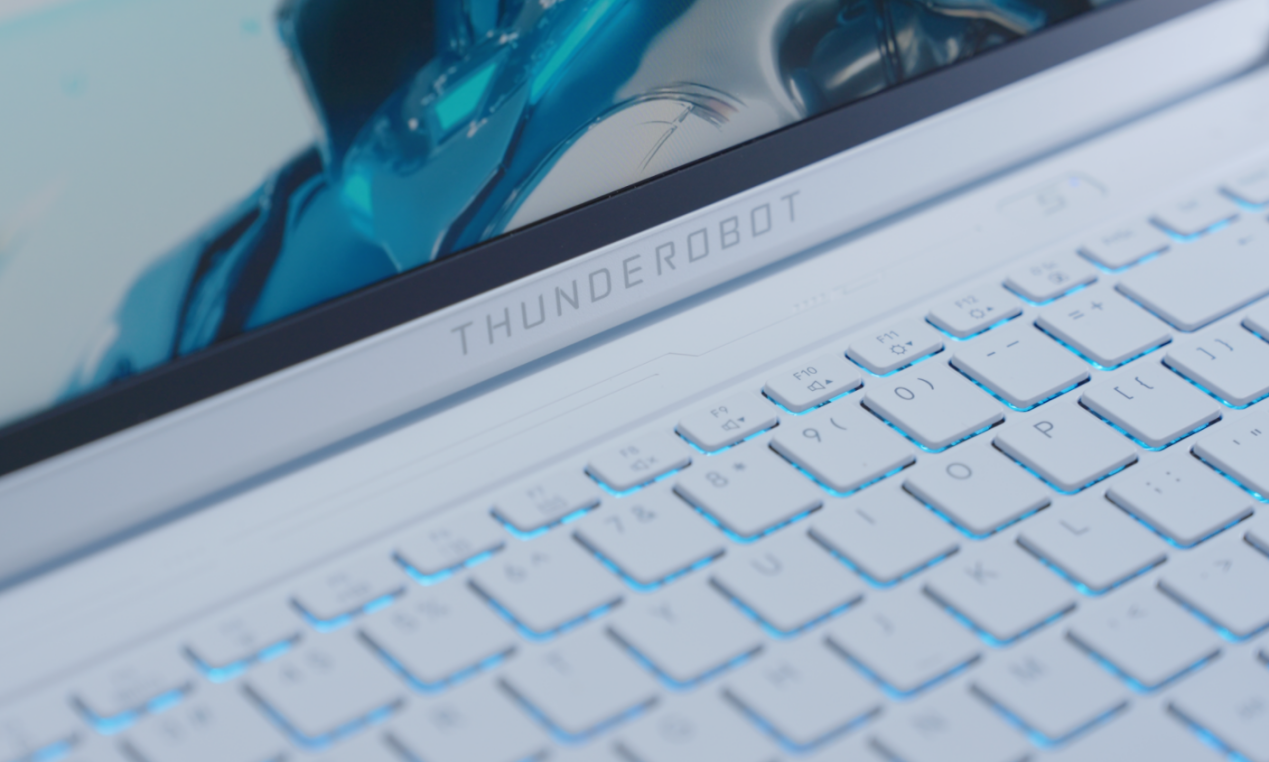 雷神猎刃S Ultra一改游戏本传统的黑灰低调配色,清新富有活力的“天青色”作为A面主色搭配纯白色机身,天青色外壳装饰有极简凌厉的机甲风装饰线条,搭配A面PVD镀银LOGO灯,侧面镭射炫彩装饰条,既彰显个性锋芒,又流露独特的艺术气质,满足新生代玩家对个性与品位的双重追求。