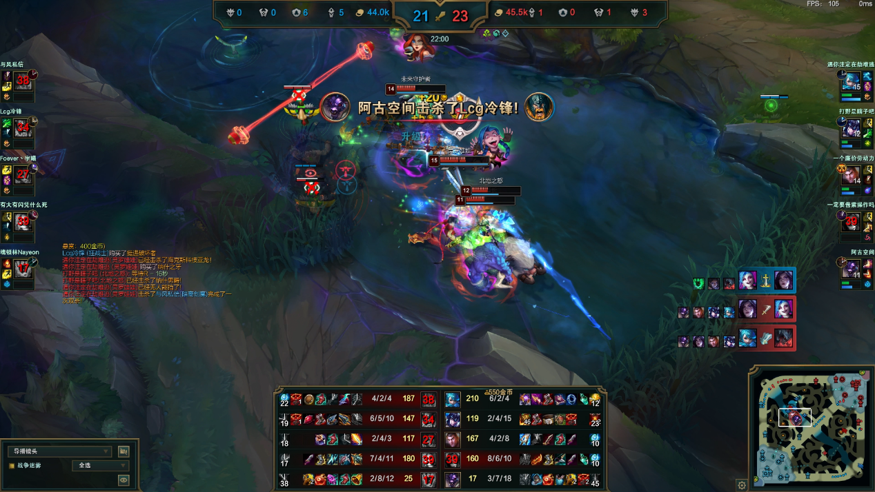 Ng对Let's go的比赛,Let's go的EZ和格雷福斯可以说是大放异彩,carry全场。EZ拿下14个人头8个助攻,而法外狂徒也砍下9个人头9个助攻,甚至没有被击杀一次。两个输出点的强势发育滚雪球,让ng无计可施,数次团灭,以30:11的人头比把胜利让给了Let's go。