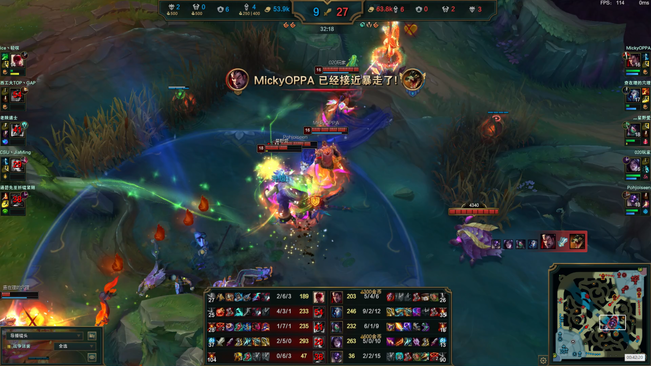 而WRG对chess的比赛成为唯一一场双方旗鼓相当、拉锯厮杀的比赛。双方的打法都是大开大合的打架流,28分钟结束战斗,WRG推掉chess的水晶,而人头则来到了惊人的28:24,堪称场面最为“激烈”的一场战局。