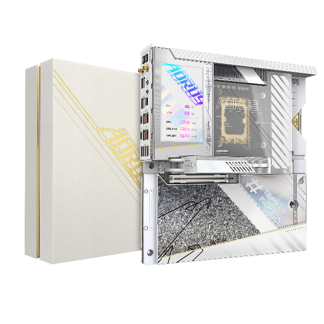 AORUS GeForce RTX 4080 SUPER XTREME ICE 16G 以其高达 2700 MHz 的核心频率和高达 885 AI TOPS的算力脱颖而出。它是市场上拥有原厂超频频率的 GeForce RTX 4080 SUPER 显卡,不仅能带来更快的游戏体验,还能实现更高效的AI计算。它采用技嘉风之力散热系统,采用仿生鲨鱼风扇设计,结合均热板和热管导热确保更强的散热性能,而显卡的纯白质感加上钛冰花纹理点缀与黄金材质的搭配使其拥有艺术般的优雅气息。特殊的 RGB Halo 三环灯特效可提供惊艳的视觉享受,侧面还配有LCD 屏幕,玩家可自定义设置图案与视频,或者监控显卡运行情况,不仅性能状态一目了然而且具有时尚感。
