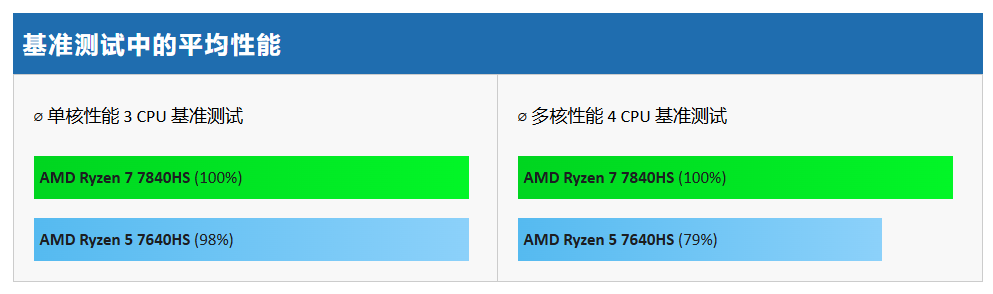 和锐龙自家产品相比,锐龙5 7640HS的单核性能依旧很强,多核成绩相当于锐龙7 7840HS的80%,符合其产品定位,性价比优势突出。