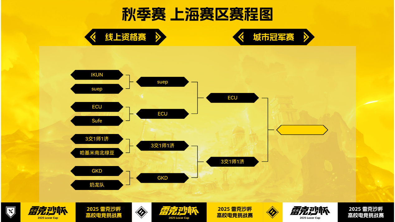 从线上赛的激烈角逐到线下赛的荣耀之巅,2025雷克沙高校电竞挑战赛秋季赛的战火持续升级!9月14日,秋季赛线下城市总决赛首站将在上海滴水湖畔的江波龙上海总部雷克沙旗舰店盛大开启,来自上海赛区的两支强队将在这里展开巅峰对决,争夺宝贵的总决赛晋级名额!