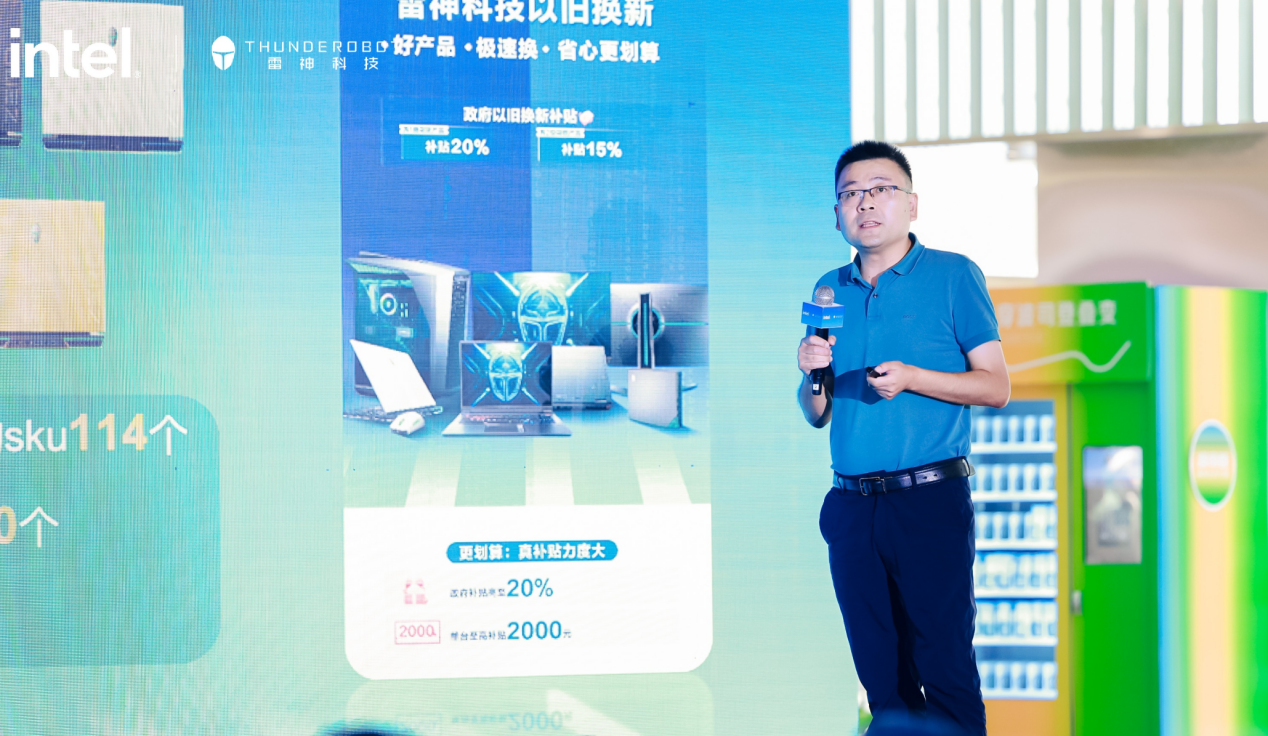 雷神科技中国区市场总经理沈伟民发布了雷神以旧换新政策实施的具体内容,在产品维度,雷神以旧换新活动涵盖了电竞全场景下的笔记本、台式机、显示器等3大品类、114款产品,其中能获得一级能效20%补贴的产品80个,二级能效15%补贴的产品34个,消费者可根据需求选择单品或参与一站式套购,全面焕新电竞生活体验。值得一提的是,由雷神与英特尔联合打造的雷神911系列、ZERO系列、猎刃系列等旗舰之作,都将参与到此次以旧换新的活动之中。