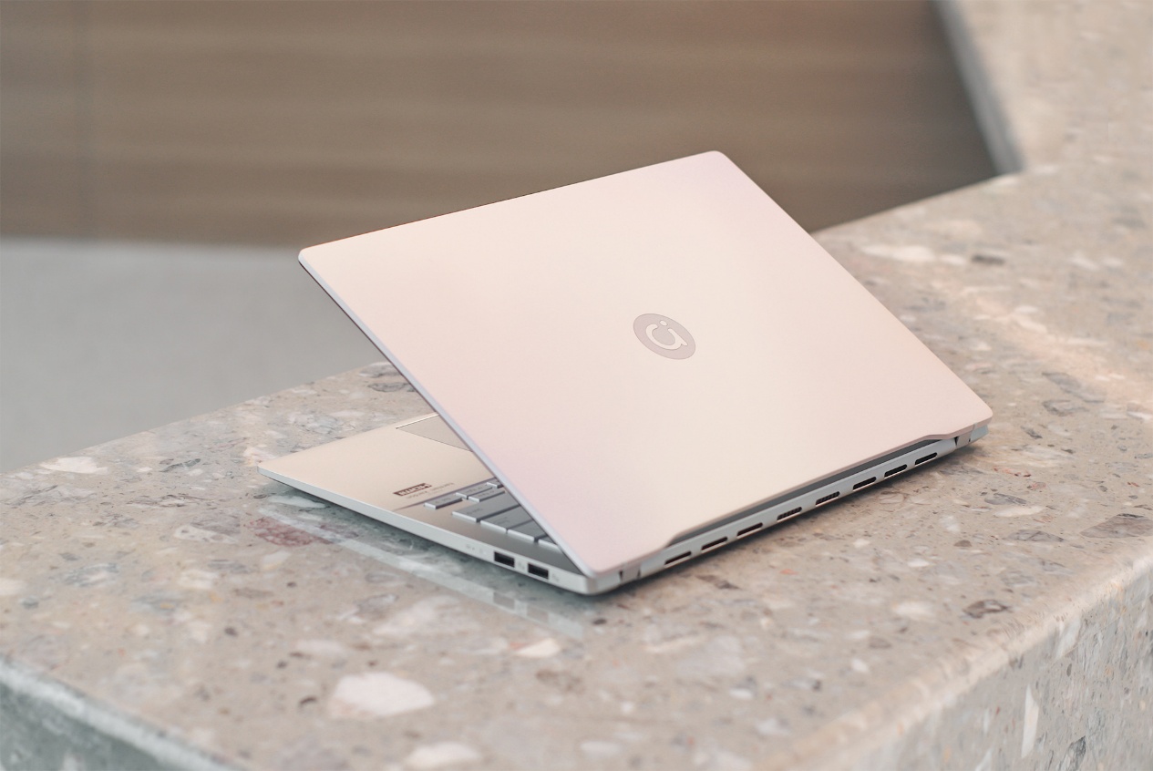 除了机身轻薄以外,华硕a豆14 Air的造型配色也是一大亮点。本文介绍的是蜜桃甜心配色款即渐变淡粉色款,这是该系列机型的限定配色,全金属机身加上特殊工艺,使得整机的质感、颜值、耐用性都不错,称得上是颜值出众,尤其是对于大家常见的银色/黑色金属外壳轻薄本而言,a豆14 Air的多彩金属机身显得相当别致。如果你不想买那些造型平庸的轻薄本,a豆14 Air能让你眼前一亮。