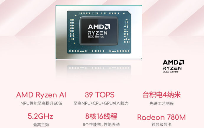配置方面,华硕a豆14 Air 香氛版搭载的是第二代全新AMD 锐龙9 H 270 AI处理器,采用4nm制程工艺,具备8核16线程的规格,最高主频5.2GHz,内置Radeon 780M核显,散热模组为双风扇双热管系统,并支持4档散热模式可调。配合32GB LPDDR5X 7500MT/s超高频大内存与1TB PCIe高速固态硬盘,可实现多任务处理零卡顿,同时运行多个网页、PS 修图、即时通讯软件时依旧流畅,畅玩《英雄联盟》《原神》等主流游戏也轻松愉快,工作娱乐无缝切换。