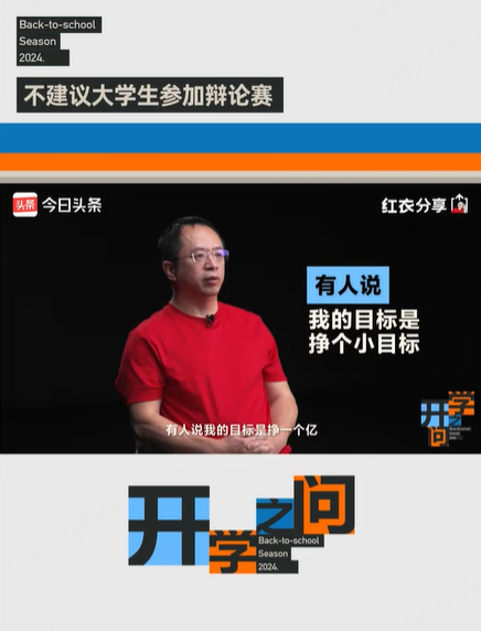 从9月1日开始,全国各地的学校陆续迎来开学季,为此360集团创始人周鸿祎受抖音集团-今日头条邀约,录制了开学季特别策划「开学之问」视频节目,分享自己对大学生活及大学生未来发展的一些建议和看法。他以自己的学习生涯为例,提出大学生应该明确人生目标,制定阶段性计划,培养学习、分析问题和解决问题的能力,以及广泛的兴趣爱好。同时他建议大学生不要参加辩论赛,而更应注重团队协作和讨论。