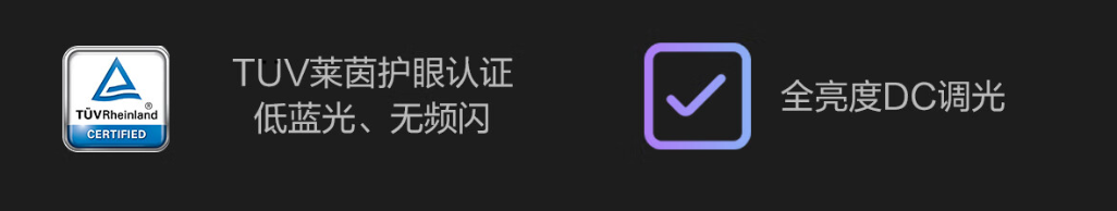 针对办公族、学生党“长时间盯屏”的痛点,该屏幕通过TUV莱茵低蓝光认证与无频闪认证,全亮度支持DC调光,有效减少屏幕明暗交替对眼睛的影响,连续工作学习一天也能减轻眼干、眼疲劳。