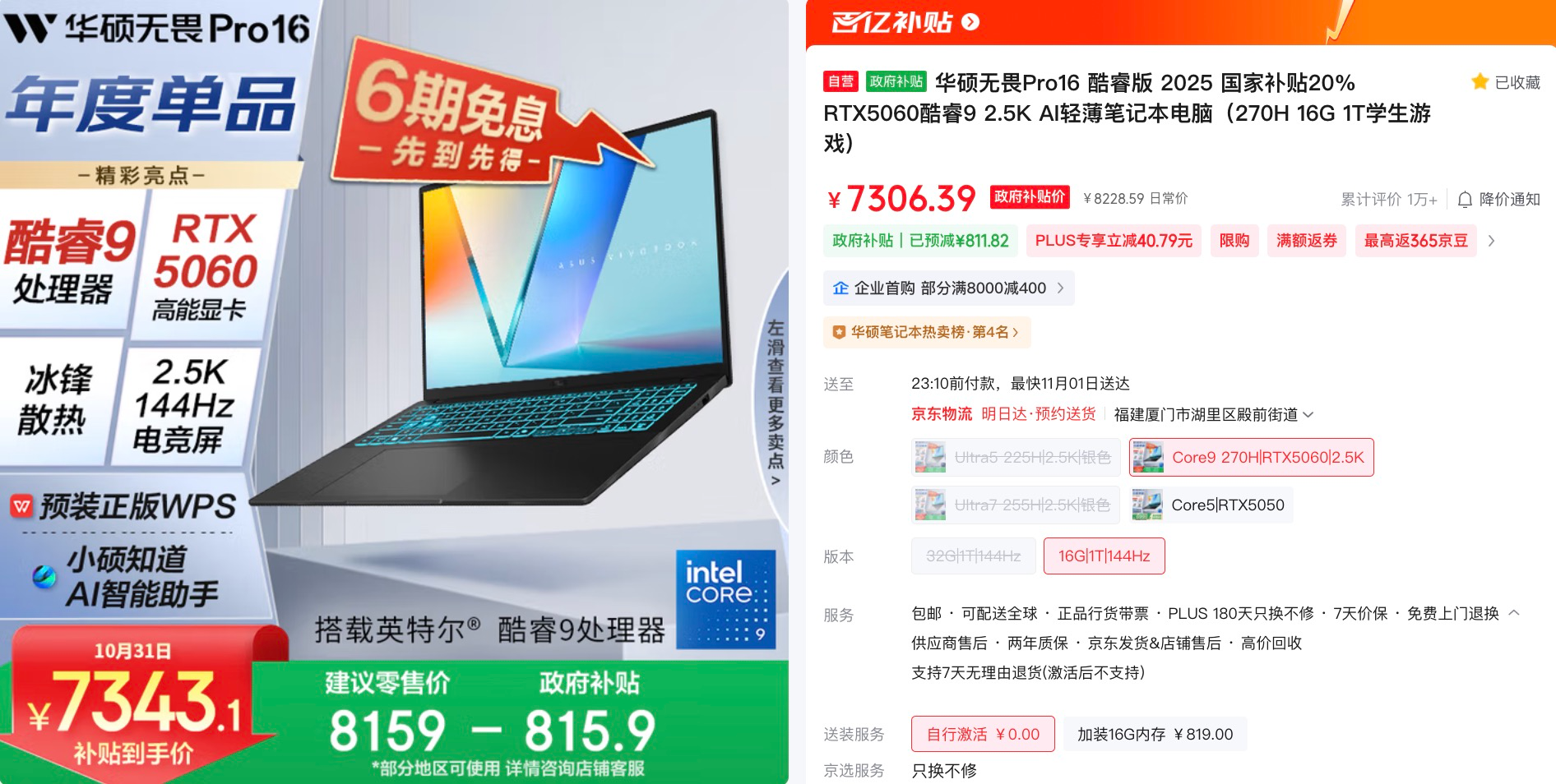 双十一大促期间,正是数码装备焕新的黄金时机,对于想买一台能同时hold住办公、专业创作与高清游戏多面手笔记本电脑的小伙伴,华硕无畏Pro16 2025是主流价位中高刷全能本中的优选。这款机身重量轻约1.95kg的大屏高刷全能本,搭载了英特尔酷睿9 270H标压处理器+ RTX 5060独显的硬核配置,以及2.5K 144Hz 高刷全能好屏、华硕冰锋散热等亮点加持,双十一期间零售价8159元,部分地区叠加政府补贴后到手价仅7306.39元起,无论你是职场办公族、专业内容创作者,还是爱打游戏的学生党,都可关注。