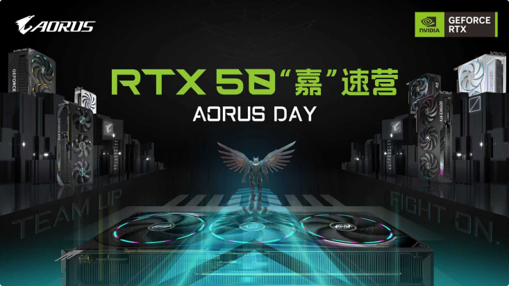让我们用RTX 50系显卡点燃电竞热情,用AORUS硬核装备铸就胜利!