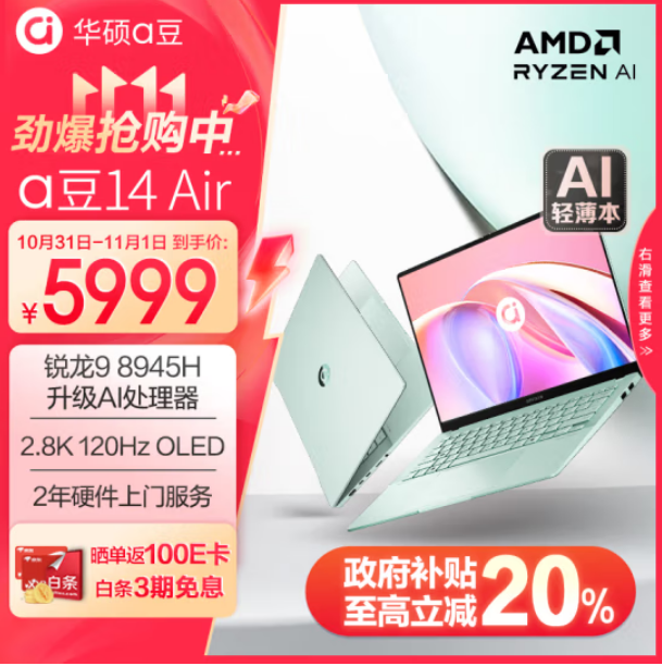 以上就是本期推荐的4款热门轻薄本机型,双十一期间优惠力度非常大,还可享受国补政策,至高立减20%,不同地区优惠政策不同,具体请参考详情页信息,大家可以按照自己的需求选择合适的机型。
