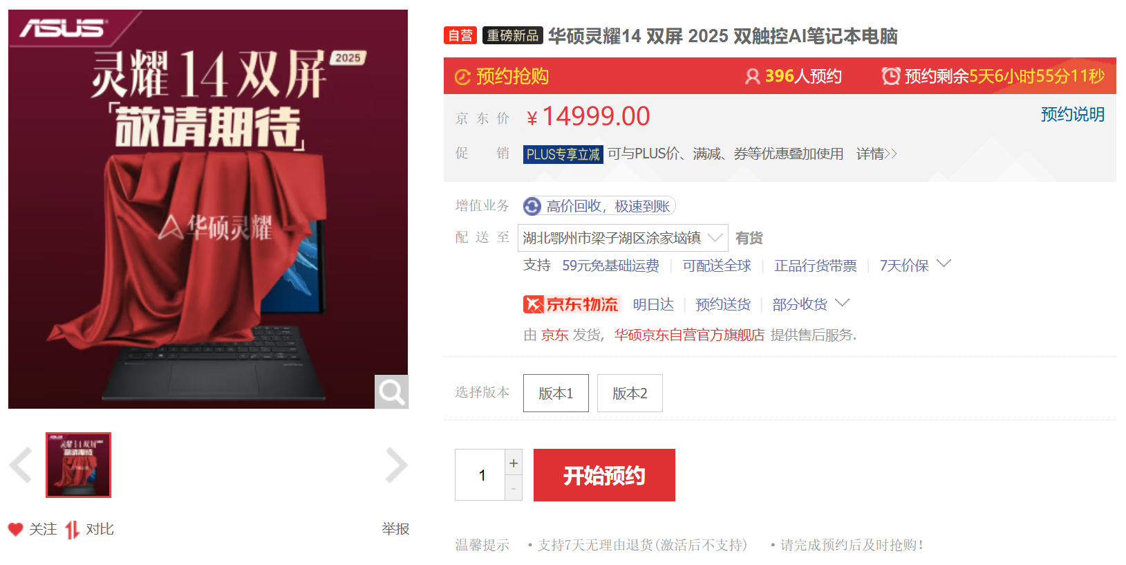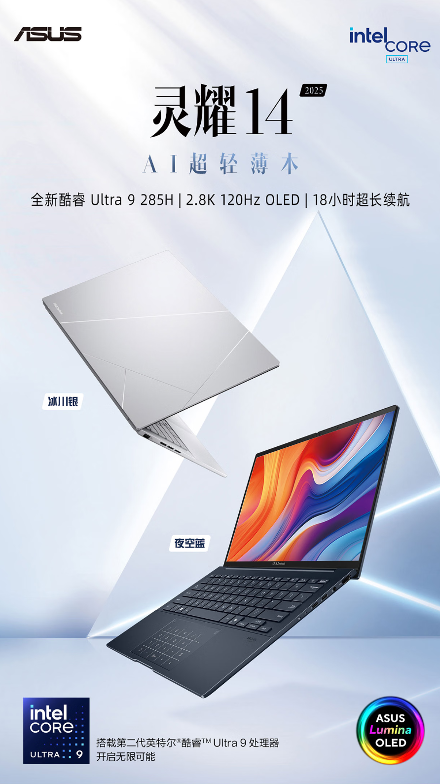 目前,华硕灵耀14 2025、灵耀14 双屏 2025(Arrow Lake)和灵耀16 Air(Lunar Lake)已开启预售。