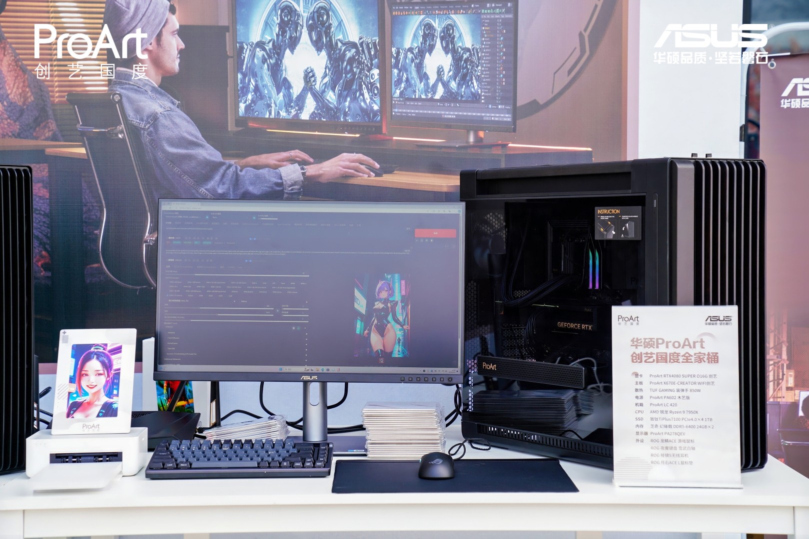 不少学子来到华硕ProArt创艺工坊,通过Stable Diffusion合成虚拟头像数码照片,获得专属于自己的虚拟头像纸质照片。而在这里选用了华硕ProArt Z790-CREATOR WIFI创艺主板以及华硕ProArt RTX4080 SUPER/华硕ProArt RTX4070 SUPER显卡打造的ProArt创艺国度全家桶主机,让学子们体验到这套高性能主机平台AI交互处理方面的强大实力。
