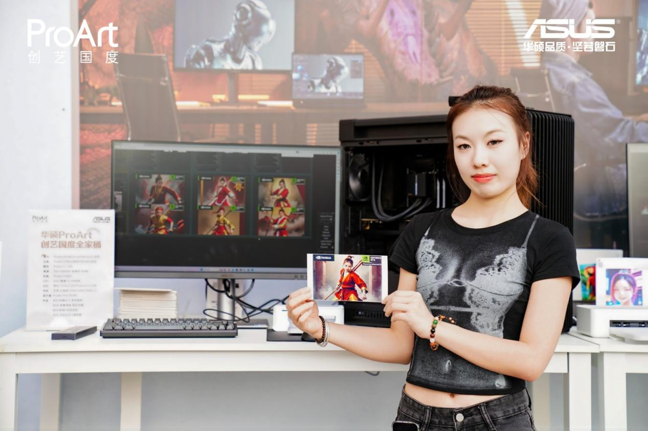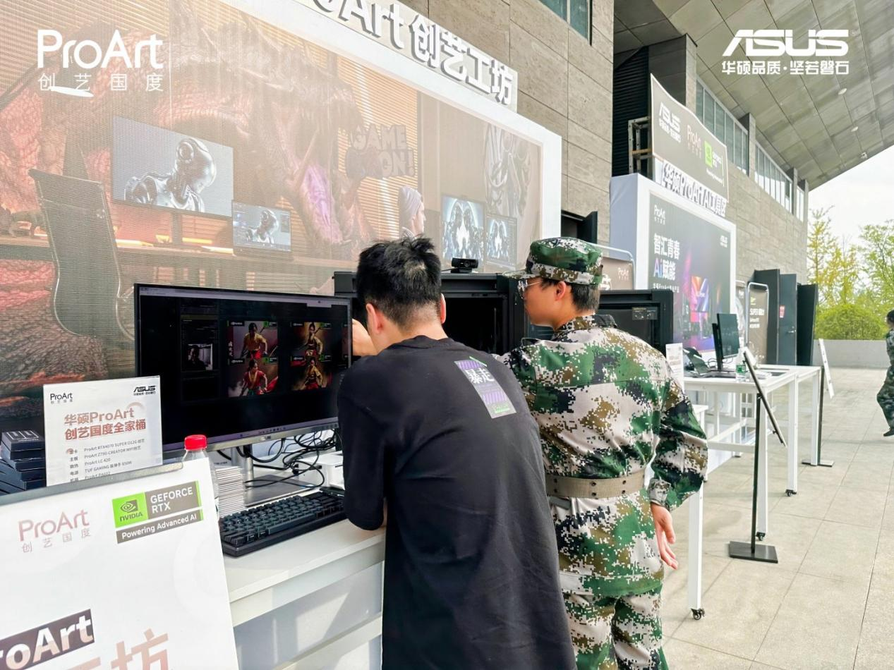 理论联系实际,才能更好地融会贯通。听完技术干货分享,怎能不上手体验一把呢?在活动现场,还为广大学子们准备华硕ProArt 创艺工坊、华硕ProArt高能游玩和华硕ProArt AI工具站三大功能区,提供不同配置的华硕ProArt创艺国度全家桶主机让大家现场体验AIGC的强大生产力以及NVIDIA GPU的AI加速力。