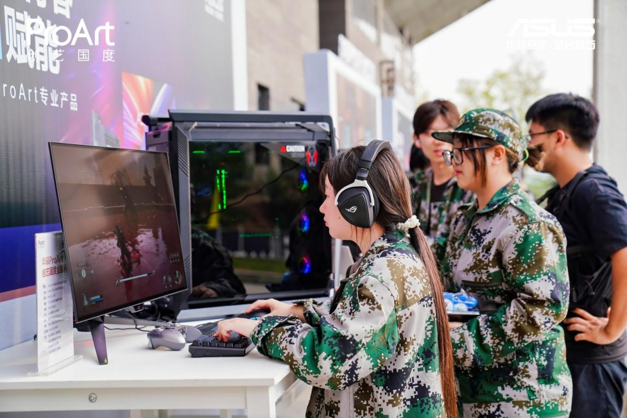 而在华硕ProArt高能游玩区,学子们充分感受到了华硕高能游戏主机在NVIDIA游戏黑科技加持下的畅快体验。尤其是在体验对显卡要求很高的《黑神话:悟空》游戏中,更是感受到了来自NVIDIA GPU的AI技术实力。DLSS+帧生成技术的应用,让玩家在游戏中体验更高帧率,更佳画质,也能够真切地感受到DLSS开启状态下给游戏带来的顺滑画面体验。