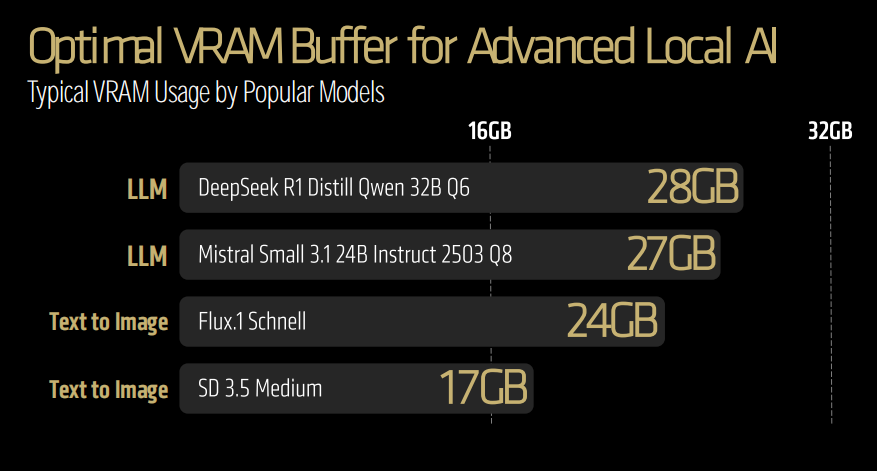 此外,我们也可以看到,主流的模型对于显存的需求也是非常高的,例如DeepSeek R1 Distill Qwen 32B Q6就要占用高达28GB显存,其他几款主流模型也要占用17GB~27GB不等,因此用来做AI计算的显卡最好是拥有32GB或以上的显存才够用。
