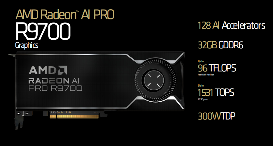 AMD本次发布会也更新了专业显卡产品线,推出了基于RDNA 4架构的Radeon AI PRO R9700,为高性能边缘计算提供了强大的解决方案。