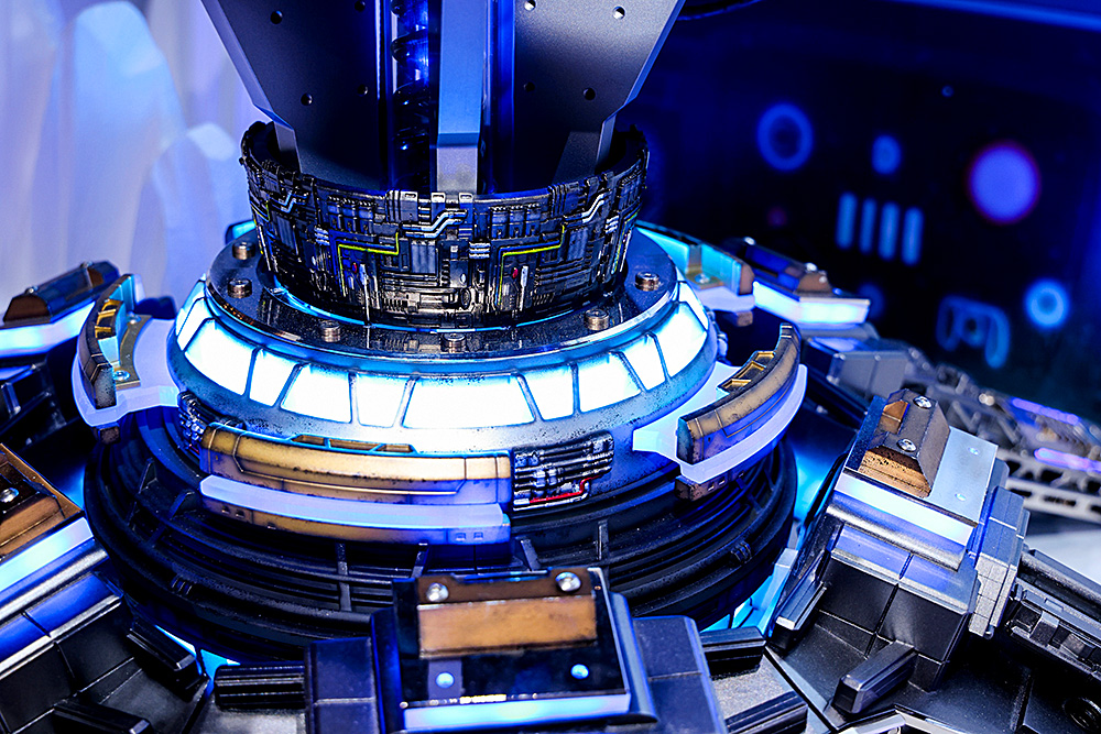 “K-Power行星发动机”采用了《流浪地球》漫画中的重头标志物——地球发动机的外形,整体结构搭建以30mm铝合金为基础,表面覆盖数百个精密打印的高密度树脂材质配件,后续经过人工打磨、精工烤漆、手工喷绘和战损加工处理,从筹划设计到制作总时长超过1000小时;内部搭载了金士顿高性能、高颜值,稳定性与可靠性出众的存储产品,用硬实力展现金士顿“苍穹星海,存储未来”的理想与信念。