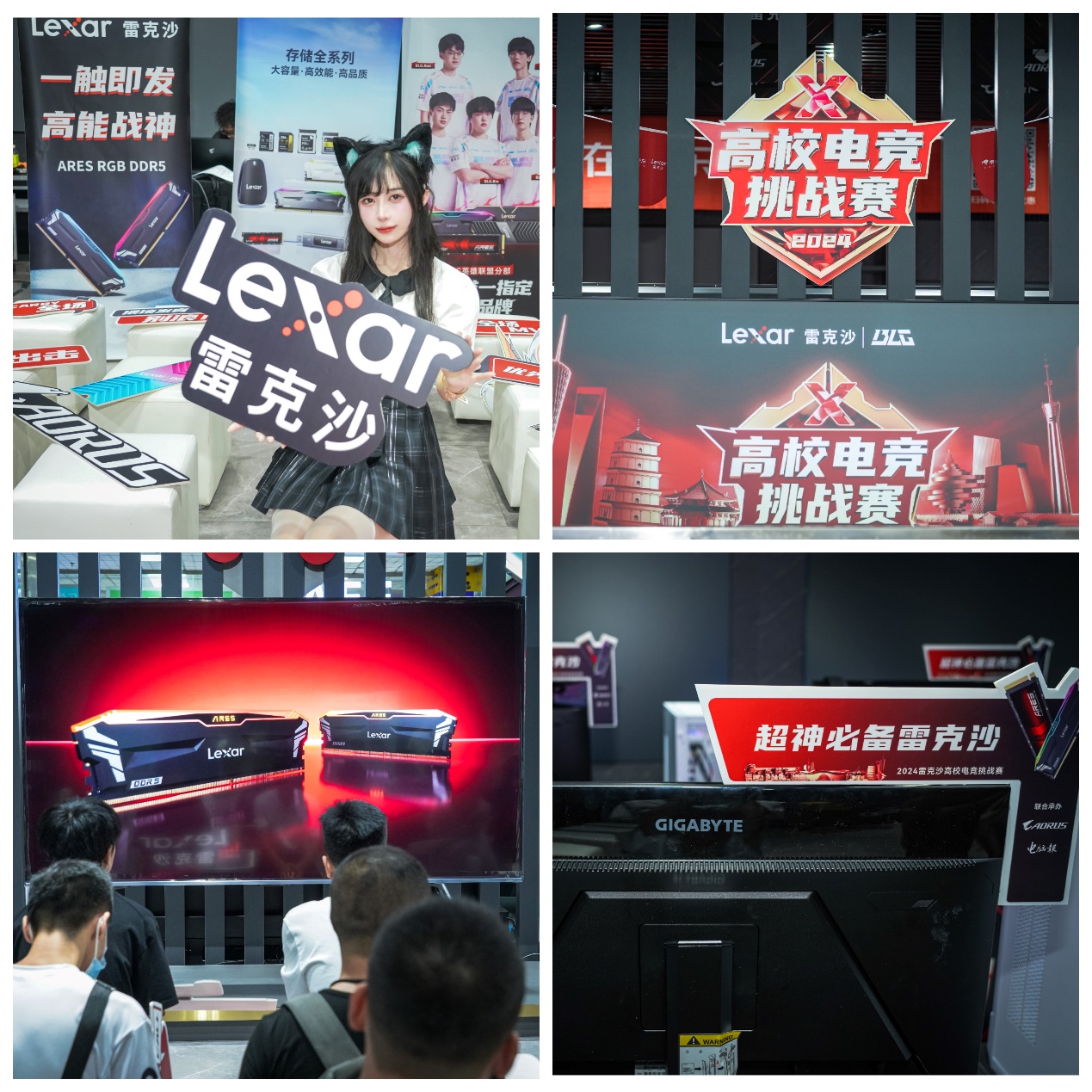 由Lexar雷克沙高端存储产品战神ARES SSD和ARES DDR5 7200高速电竞内存和AORUS B760M系列主板、RTX4070Super雕族显卡以及AORUS、赛睿高端电竞外设组成的不同配置、场景对应的整机和游戏对战平台,在现场为大家进行细分场景展示和体验,从高端电竞游戏存储产品到电竞游戏板卡、机电散产品,再到外设产品,每一处展示都透露着Lexar雷克沙和AORUS、赛睿品牌的深厚底蕴和对电竞文化的热爱。