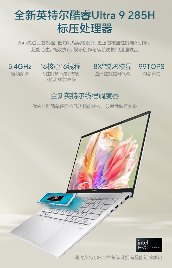 首批搭载该系列处理器的新一代华硕灵耀14 2025 AI超轻薄本也在现场进行了全球首秀。整机轻约1.19kg,演绎极致轻薄美学;搭载第二代英特尔酷睿Ultra 9 285H,效率续航再突破;新增小硕知道AI智能助手,与用户共同探索AI无限可能。新机在京东商城同步开启预约。