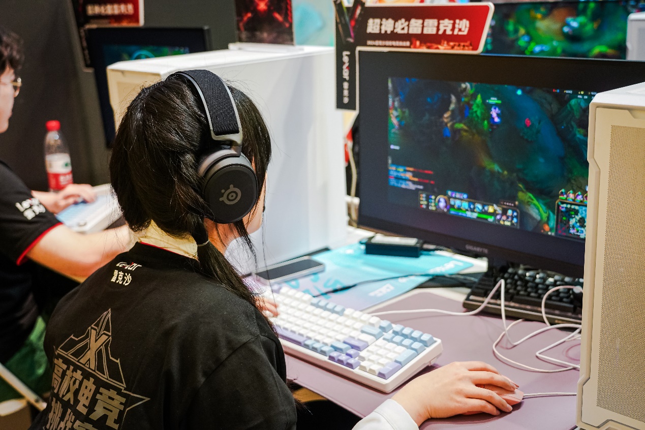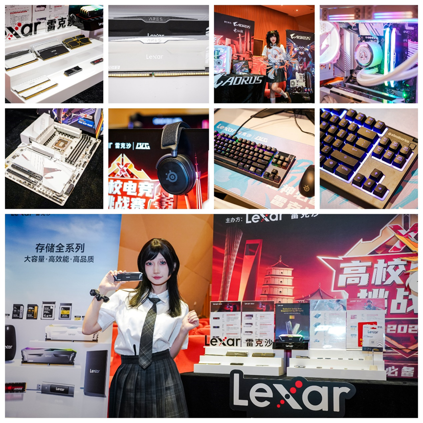 从Lexar雷克沙的高端电竞游戏、创意生产存储产品与外设,到AORUS等品牌的雕族全系列主板、RTX40系游戏电竞显卡、电竞显示器、电竞机电散产品,再到赛睿等协力品牌的高端电竞游戏外设,以及结合几大品牌整合而成的各种成套体验平台、整机、游戏环境,井井有条等待粉丝和参赛队员们到来。