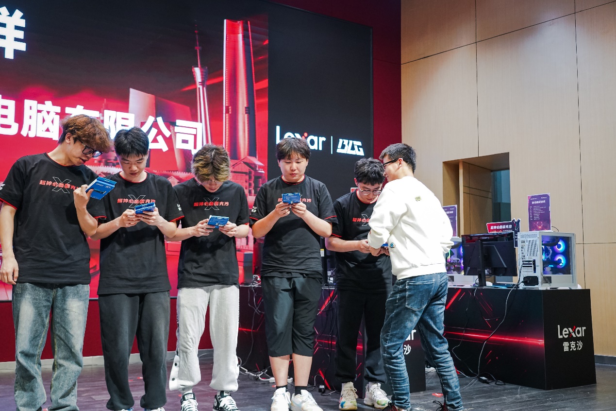 体验区里,队员们在Lexar雷克沙与协力品牌带来的强力电竞装备前驻足,他们细致地调试着设备,力求在比赛中发挥出最佳状态。同时,他们也举起口号标牌,表示自己的必胜信心。
