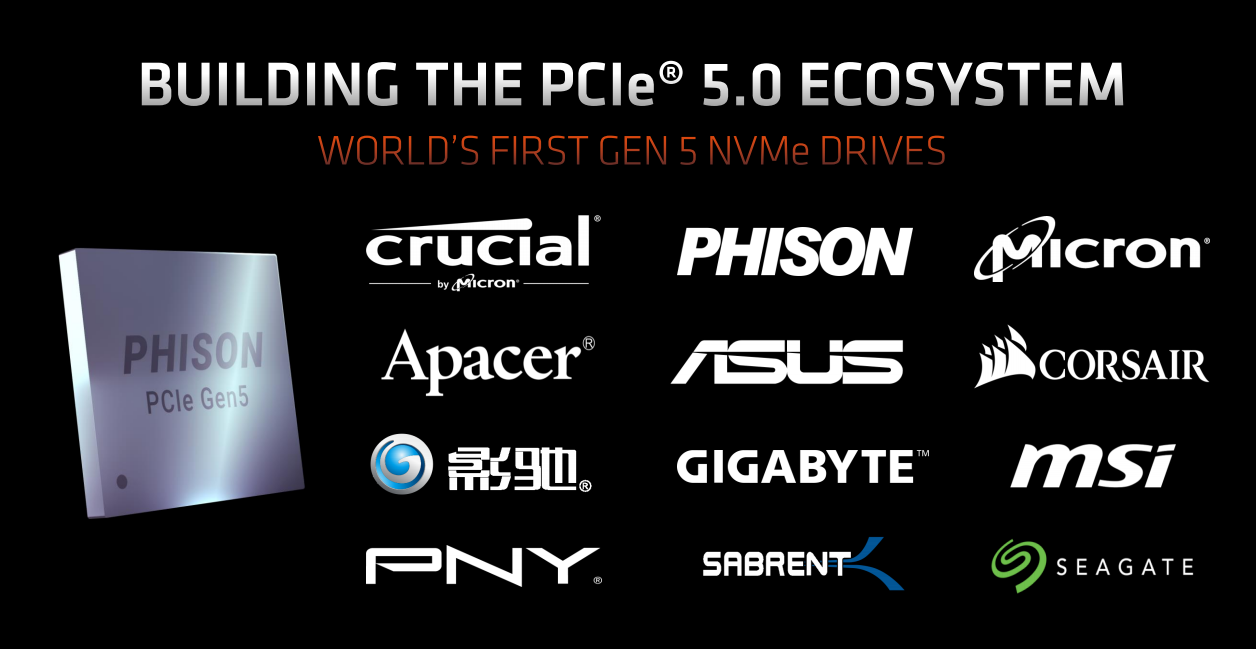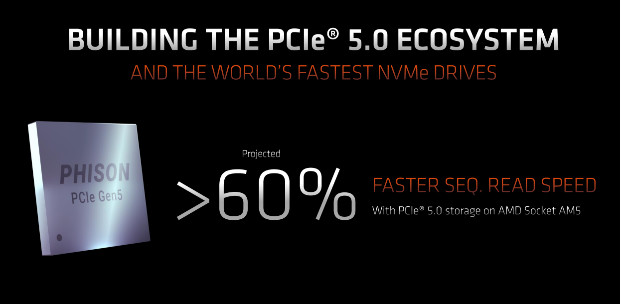这次AMD还特别介绍了PCIe 5.0的合作解决方案,主控来自Phison(群联),是全球首款PCIe 5.0 NVMe驱动芯片,持续读取速度提升超过60%。