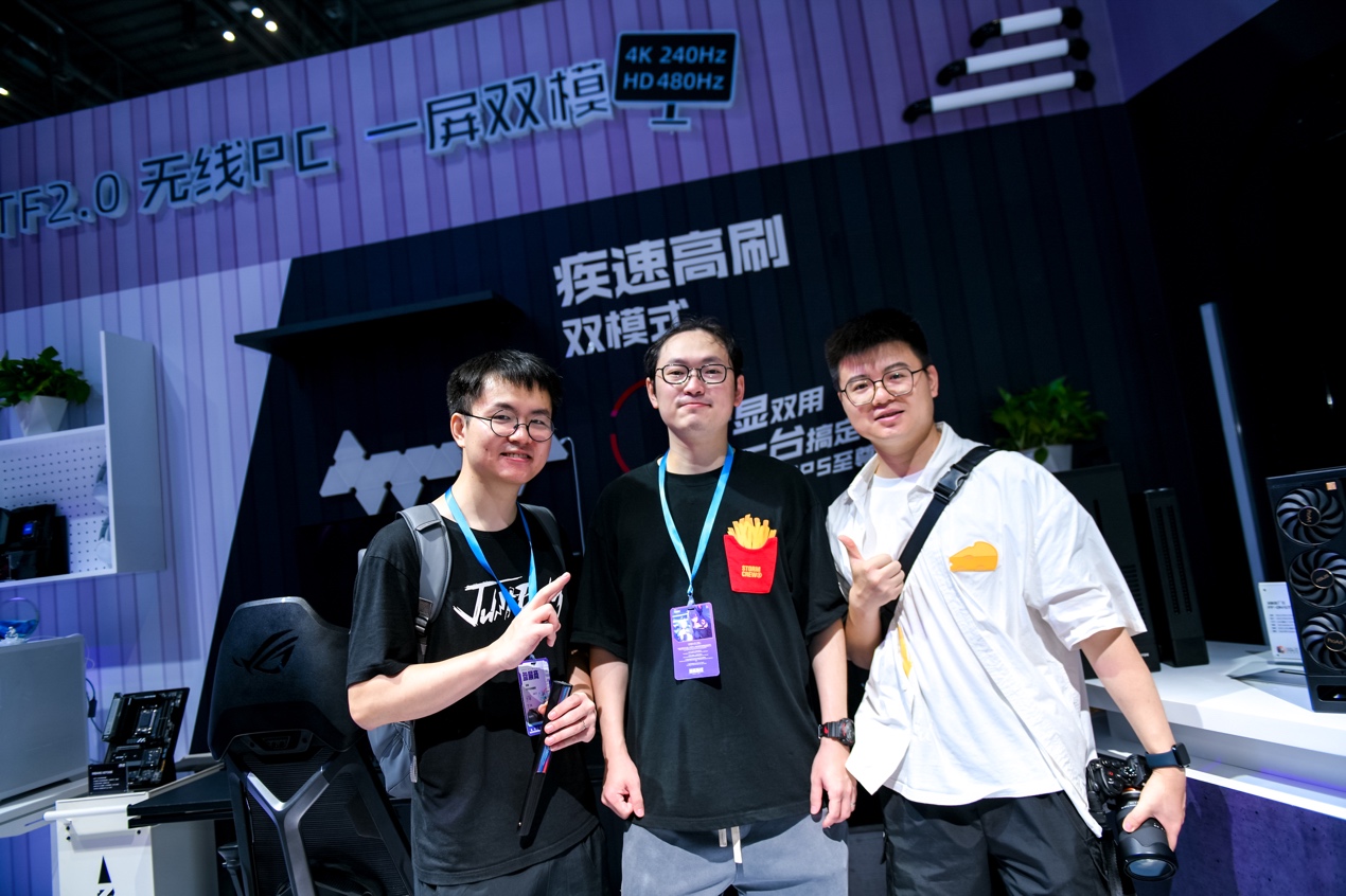 对于想要亲自高帧率畅爽游戏的玩家们来说,ROG星舰中的“超高刷帧够爽”展区绝对是你的梦想主机。此区7月12日和13日分别由@阿狸才不是受和@老戴在此与玩家进行FPS高刷挑战赛,战况激烈,精彩纷呈!展出的两套超高刷全家桶分别以TUF GAMING Z790-PRO WIFI主板和ROG MAXIMUS Z790 DARK HERO主板为核心。这两款主板均颜值在线,性能过硬,还有诸多电竞黑科技,可谓玩家致胜利器!