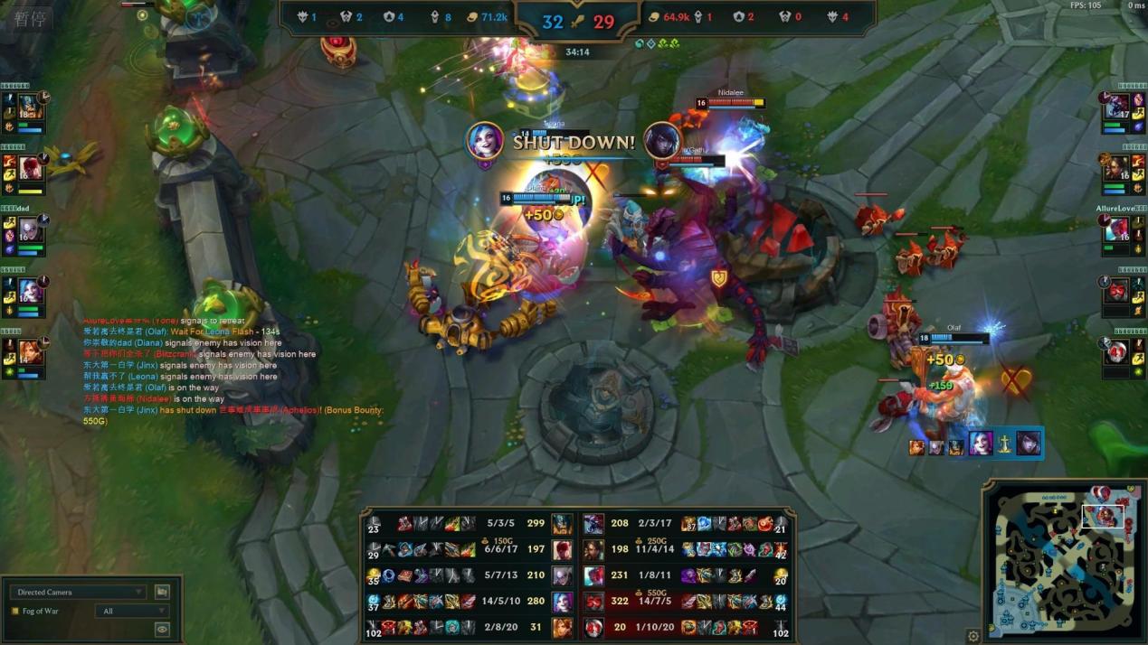 第34分钟,随着中路二塔团战中,KPL阿卡丽和鳄鱼凭借高爆发和高坦度团灭WHUG,乘势一波推上高地,在兵线帮助下快速推掉水晶,以25:17赢得通向赛区决赛的最后一张门票。