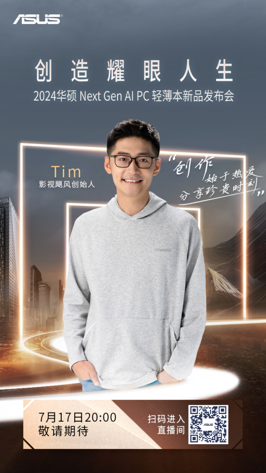 7月17日20:00 ,华硕将举行「2024 华硕Next Gen AI PC 轻薄本新品发布会」,带来ProArt、灵耀两大系列新品。这场发布会看点有哪些?话不多说,带你一起来了解。