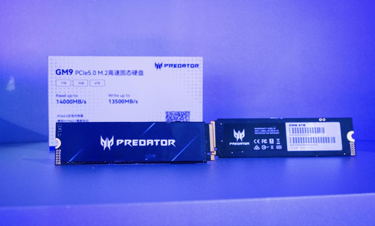 而在固态硬盘方面,新锐的GM9固态硬盘具备PCIe5.0次世代性能,连续读写性能达到14000/13500MB/s,支持NVMe2.0最新协议,具备出色温控性能,杜绝高温降频还附赠系统转移软件,也成为满场的焦点。