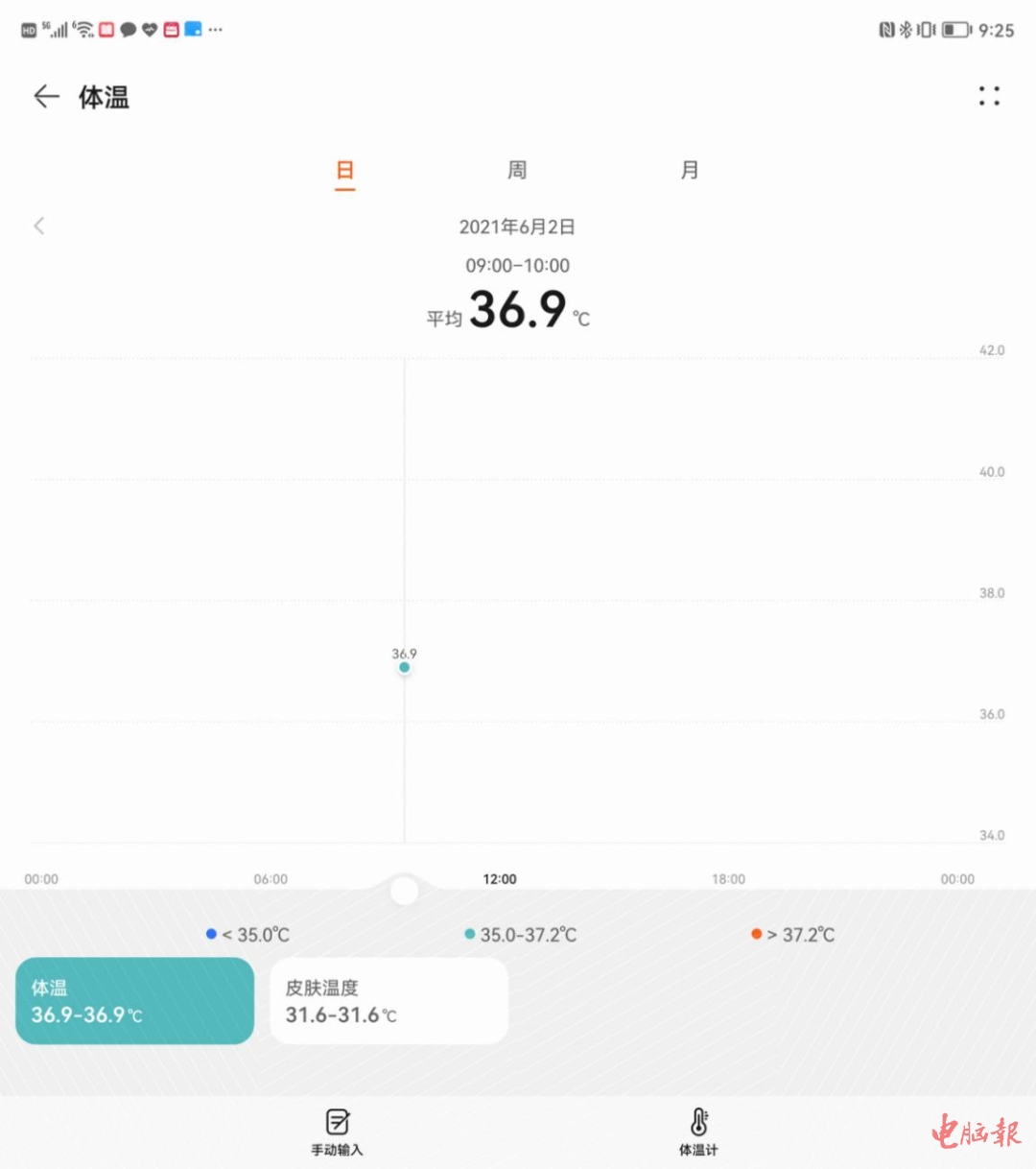 不过在体验过程中,体温检测要控制的变量其实不少。比如过高的环境温度,手表自身发热等,都会对温度传感器造成干扰。尤其是手表刚充完电,机身内部温度较高。这时如果要使用体温检测功能,手表就会提示你十分钟后再试。