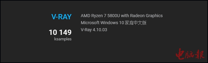 ▲V-RAY基准测试,分数越高代表性能释放越强。惠普ProBook 635的处理器分数为10149,22W款的锐龙7 PRO 4750U多核是8783;60W款的i7 10870H处理器是10374。