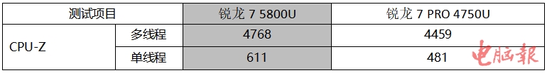 ▲CPU-Z基准测试,惠普ProBook 635处理器多线程为4768,单线程611,也胜过了22W款的锐龙7 PRO 4750U,它的多线程是4459。