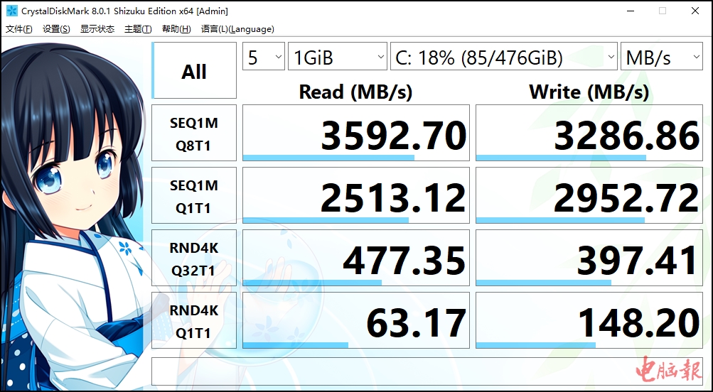 与8核16线程处理器搭配的是512GB PCIe SSD和16GB双通道内存。评测款机型的SSD来自于SK海力士,读写速度均超过了3000MB/s,不管是在PS中载入多张PSD大文件还是打开WPS等常用软件,均能提供极快的响应速度。