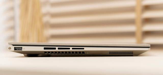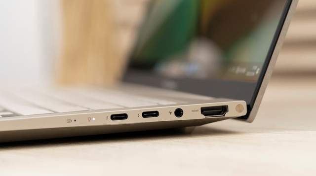 ▲限于机身厚度,虽然接口没有传统笔记本那么丰富,但是在接口设计上却很人性化,左侧带有一个USB接口可以接驳U盘等存储设备,右侧提供有常用的HDMI接口,方便日常开会接投影机等演示设备,并有两个全能雷电4接口和一个二合一音频接口。