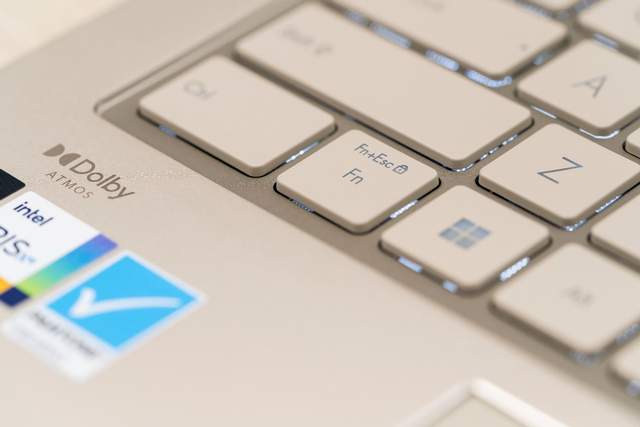 ▲背光键盘带有三级亮度调节功能,可以随亮光自动调节,白色键盘背光和米黄色键帽搭配,醒目不刺眼
