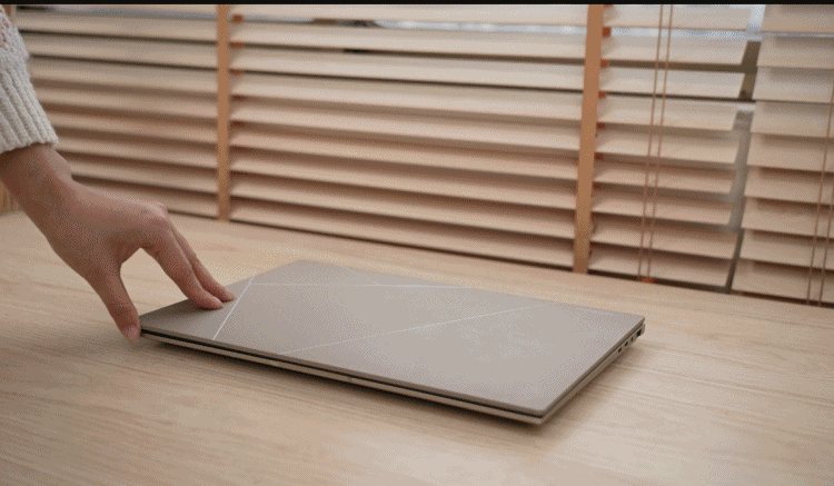 ▲同时,灵耀14 2023 旗舰版还有一个标志性的设计是顶盖通过几何线条设计,完美的融入放大版的华硕A字母logo。高光“原石分割”风格线条融入到哑光岩板质感顶盖中,呈现出来强大的几何视觉冲击力,让整个A面呈现出来“玉自璞出”的温柔切割几何美感,在不同的角度下还可以呈现出不同的视觉效果。