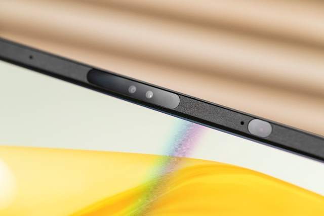 ▲在顶框高度只有7mm的边框里,灵耀14 2023 旗舰版设置有3DNR降噪功能的1080P摄像头,像素进一步提升,IR红外摄像头还支持Windows Hello人脸识别快捷登录。